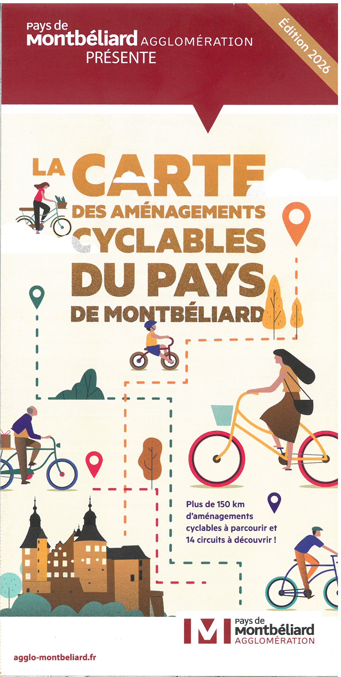 La carte des aménagements cyclables du pays de Montbéliard ainsi que celles de 14 circuits cyclables sont disponibles en Mairie aux horaires d'ouverture du secrétariat ci-dessous.