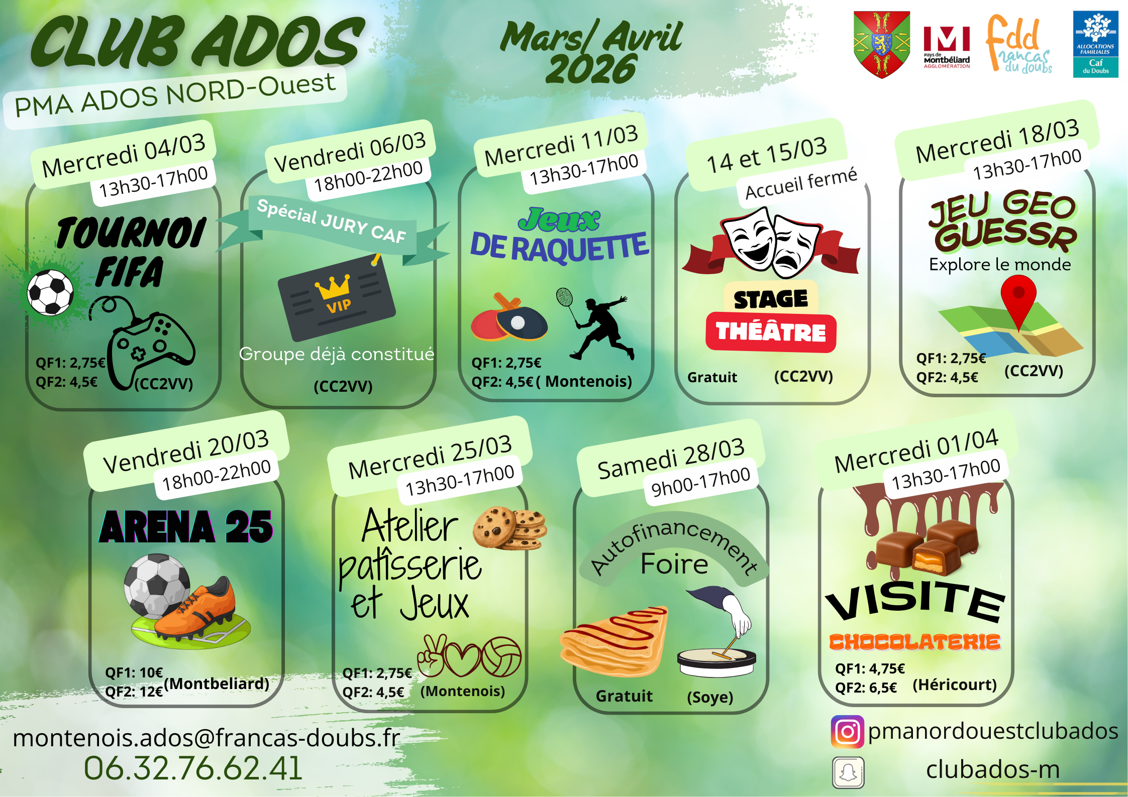Vous êtes ici : Accueil > PLANNING CLUB ADOS MARS AVRIL