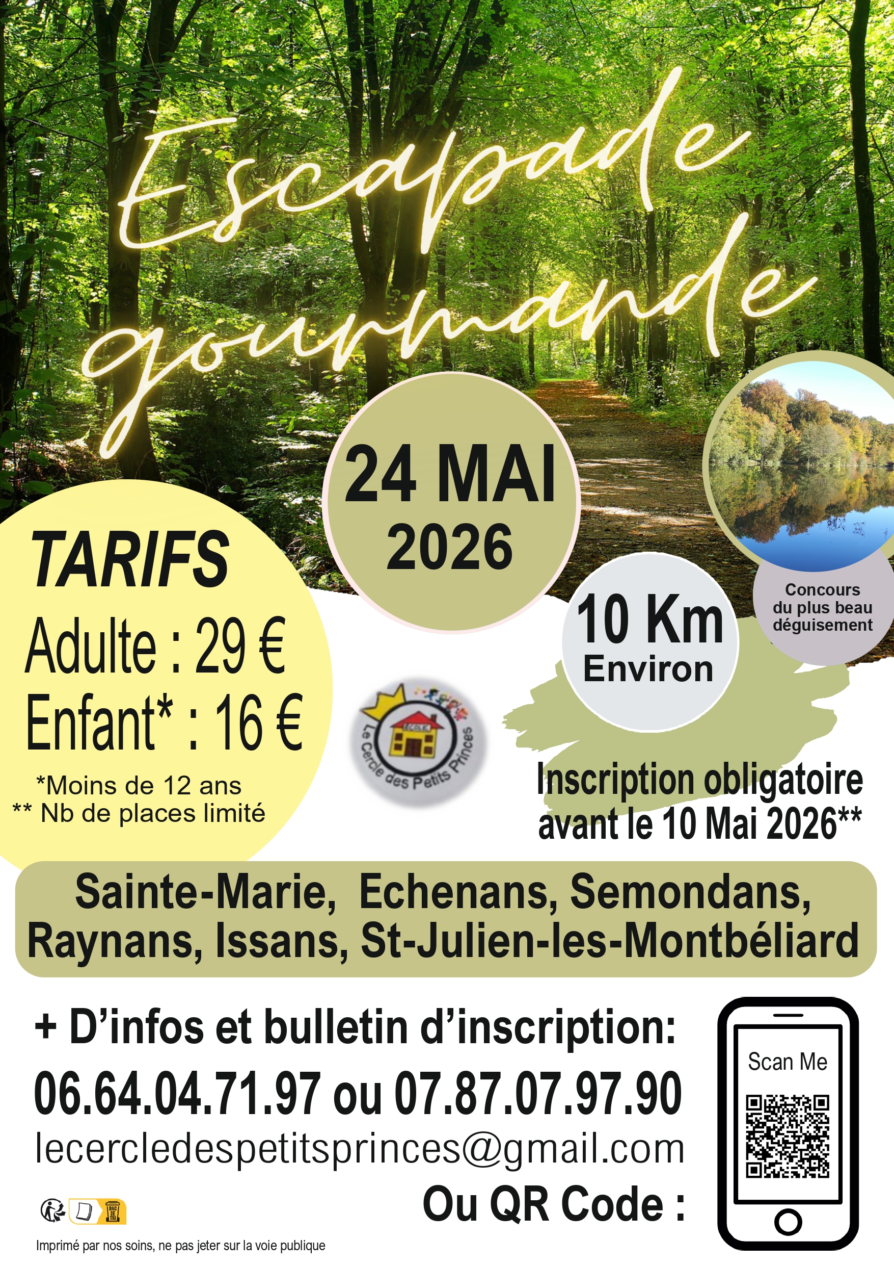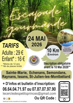 Le Cercle des Petits Princes organise une escapade gourmande le dimanche 24 mai 2026, sur les communes d'Echenans, Issans, Raynans, St-Julien-les-Montbéliard, Sainte-Marie et Semondans, environ 10 km.